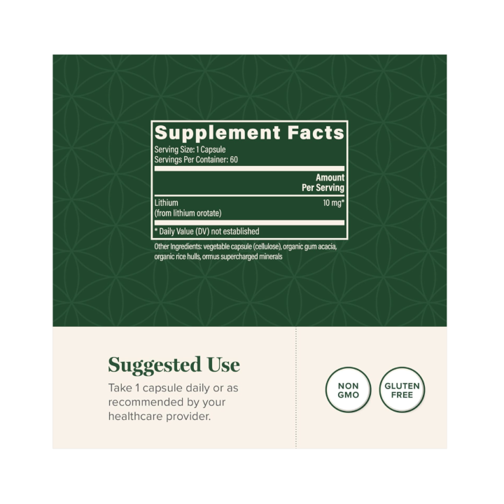 Lithium is a natural trace mineral with a rich history of therapeutic use that can play a major role in supporting a healthy mood and mental well-being. A balanced and calm mind can have a profound impact on your overall wellness.