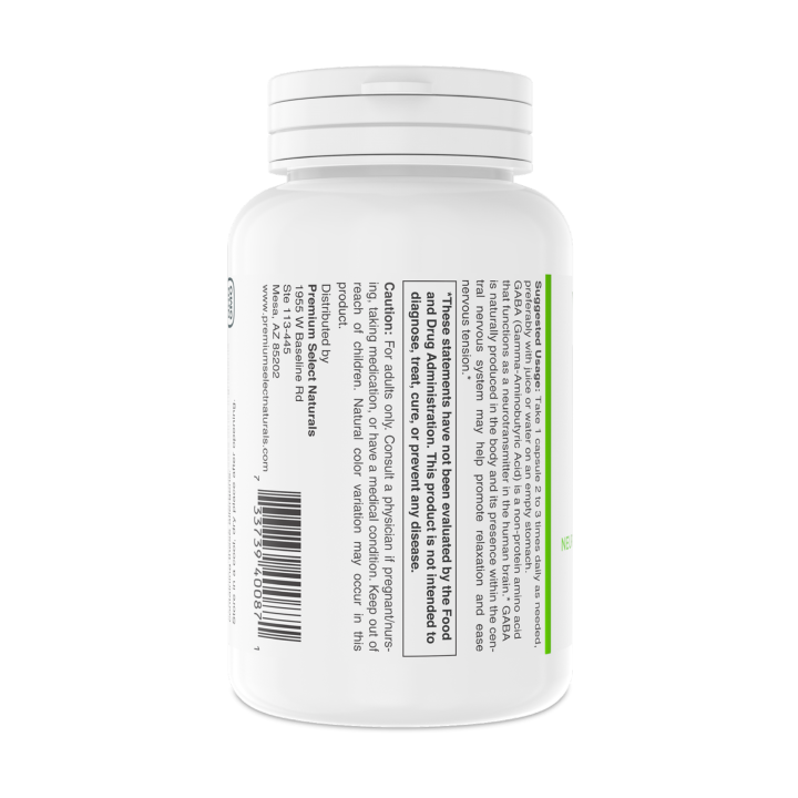 Premium Select Naturals GABA & Vitamin B6 Supplement is designed to support your mind and body with the perfect balance of natural relaxation and vitality. Packed with GABA (Gamma-Aminobutyric Acid), a neurotransmitter known for promoting calmness and reducing stress, and Vitamin B6, essential for mood regulation and nervous system function, this supplement is your go-to for mental clarity, stress relief, and overall wellness.